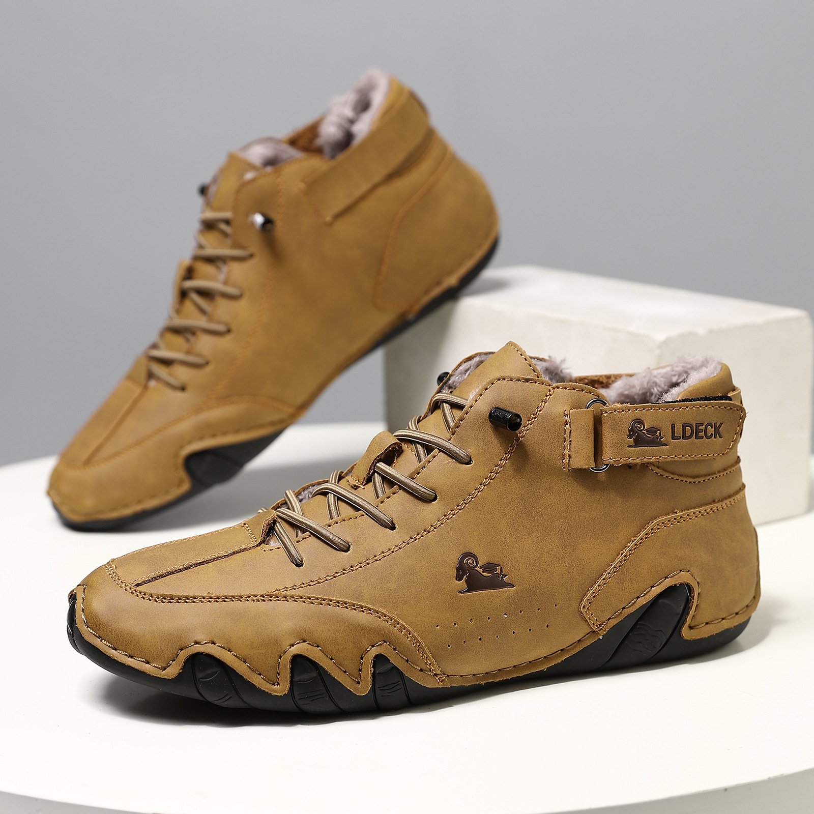 The durable, textured gum rubber outsole offers reliable traction on and off the road. Detailed with our signature animal logo and “LDECK” text on the strap, these shoes perfectly blend casual refinement with urban functionality. Designed for style, warmth, and a secure grip, they are the ideal choice for any casual driving ensemble.